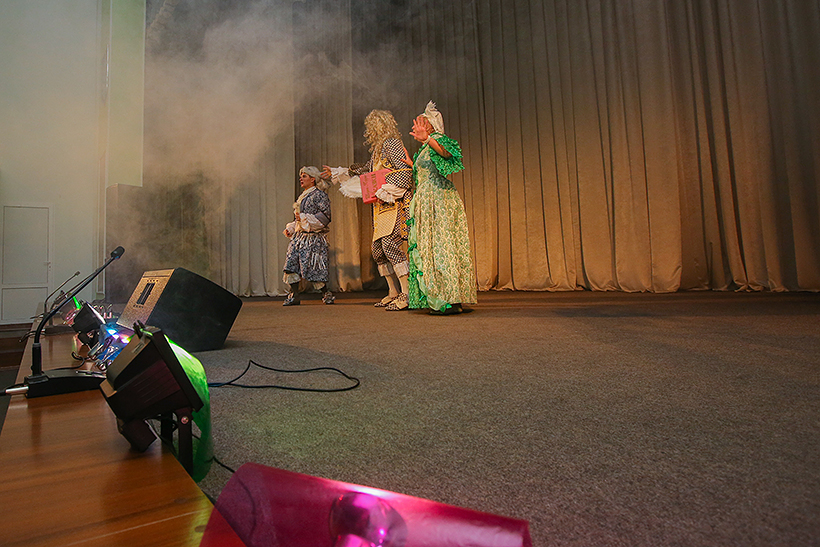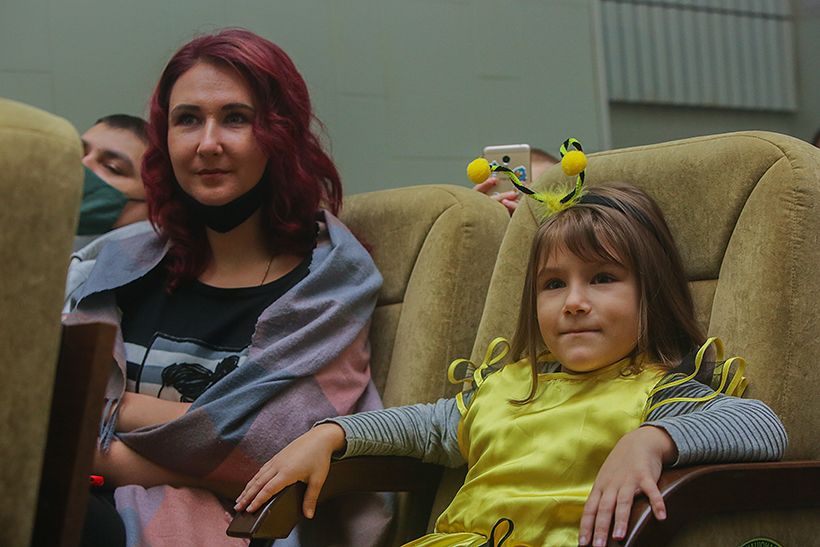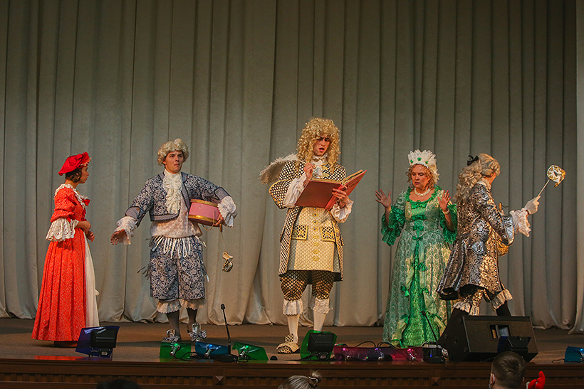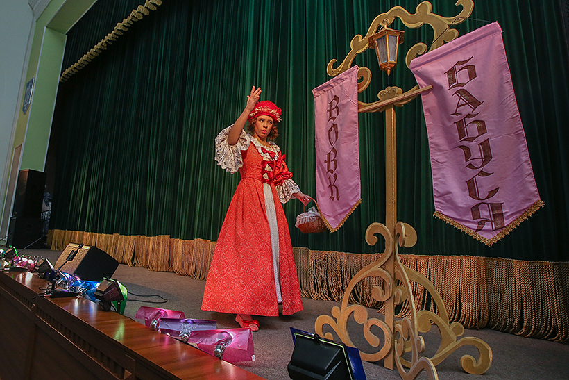 Провідні актори театру презентували діткам виставу за мотивами відомої і всім улюбленої казки «Червона Шапочка». Стилізація костюмів та простору, пластики і музики відбулася у дусі епохи Людовика ХIV. Все дійство занурило глядачів у казкову атмосферу й додатково підкреслило головну мораль — щоб стати справжніми принцесами та принцами, треба бути чемними, вихованими і обов’язково слухатися своїх батьків.