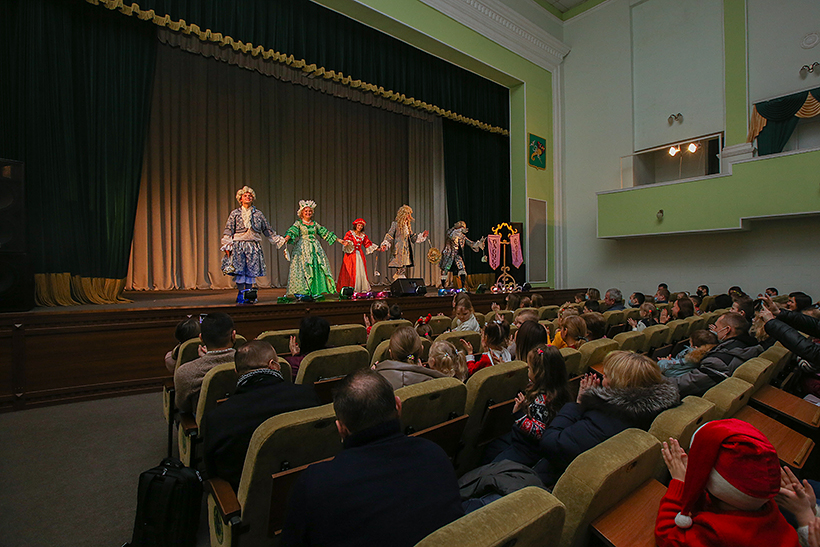 Святкова вистава «Червона шапочка», за участю Діда Мороза і Снігуроньки, створила святковий настрій усім присутнім. Після вистави дітлахи розповіли вірші улюбленим новорічним персонажам, отримали солодкі подарунки і сфотографувалися на добру згадку про незабутній день, який наповнив їх маленькі серця щастям, теплом та вірою у диво.