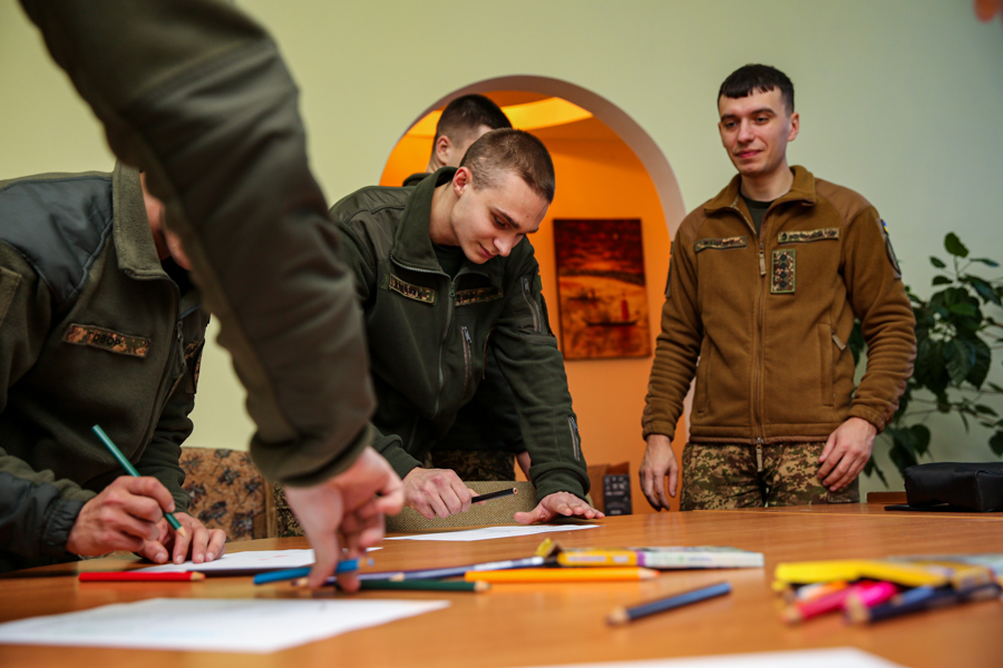Під час вправ із використанням арт-терапевтичних технік гвардійці навчалися будувати зв’язок із собою та взаємодіяти в колективі. Це сприяло згуртованості групи та зняттю емоційної напруги.