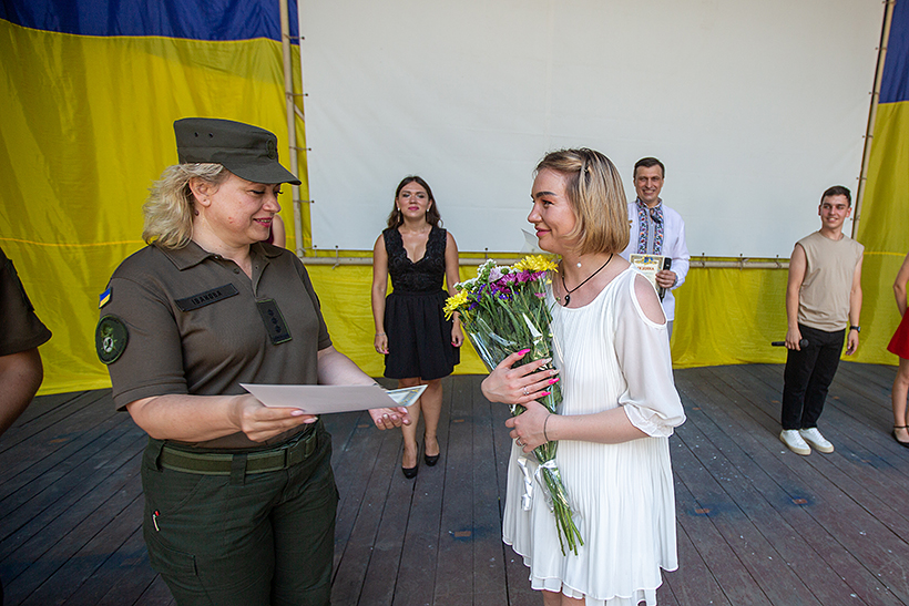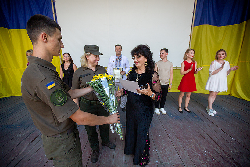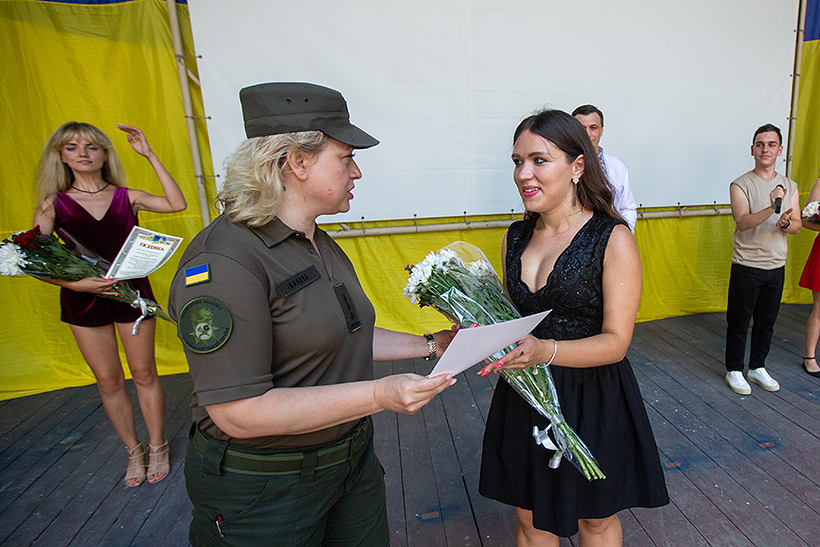 “Дійсно, хлопці праві - продовжує думку юнака заступник начальника Національної академії НГУ по роботі з особовим складом, кандидат психологічних наук, доцент, полковник Олена Іванова, - для військовослужбовців НГУ дуже важлива підтримка громадянського суспільства. Особливо, якщо вона йде від талановитої творчої молоді та від відомих виконавців, акторів, музикантів - публічних людей, до яких прислуховується вся країна, - це просто безцінне явище. Коли після вистав актори театрів Харкова спілкуються з нашими курсантами, дякують їм за службу, цікавляться, як хлопці навчаються, чим живуть, це додає не лише відчуття поваги до себе, але й стимулює майбутніх офіцерів Нацгвардії ставати всебічно розвиненими”.