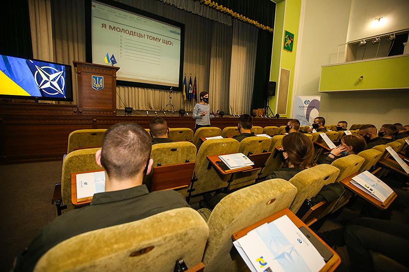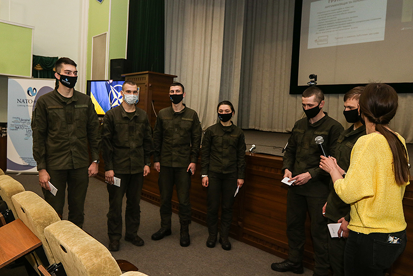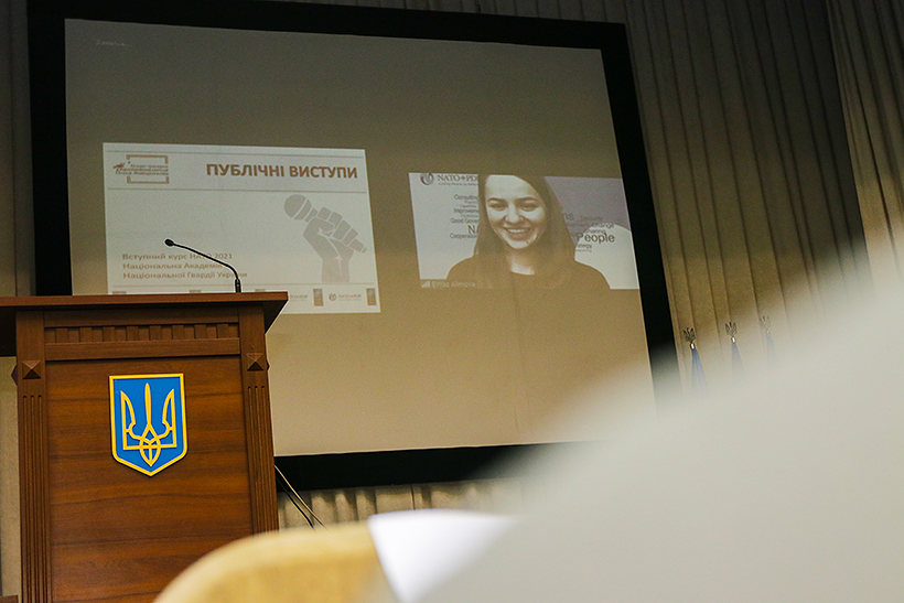 У Національній академії Національної гвардії України продовжується вступний курс НАТО. У рамках модуля більше 50-ти курсантів гуманітарного та командно-штабного факультетів Академії вдосконалюють навички публічних виступів. Особливістю цьогорічного курсу є те, що вперше він проходить в онлайн-форматі.