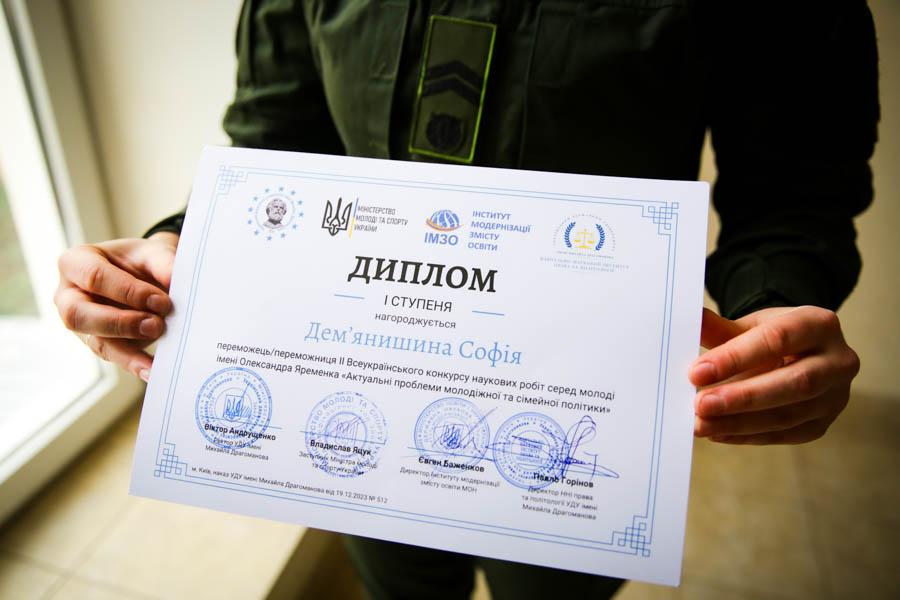 Софія Дем’янішина писала роботу під науковим менторством начальниці кафедри правових дисциплін полковника Оксани Орел, Юлія Русецька працювала разом зі старшим викладачем кафедри психології та педагогіки підполковником Андрієм Пащенко.