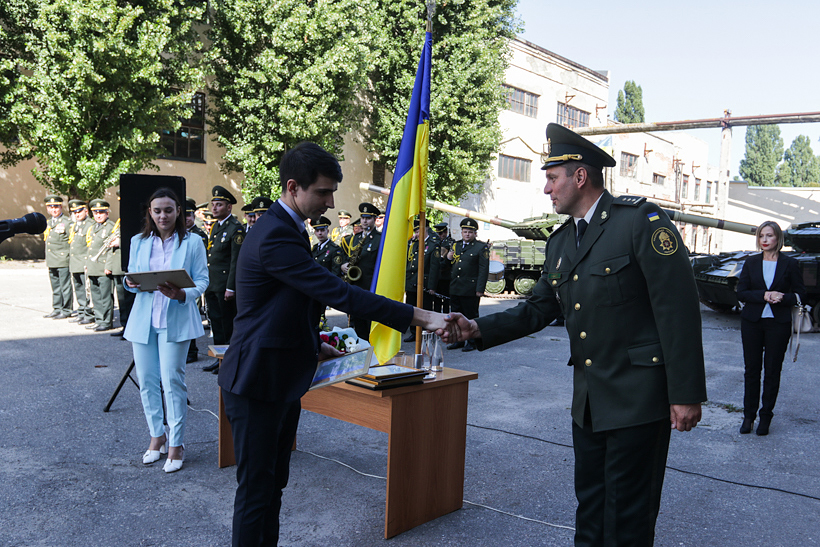 «З великим задоволенням, за дорученням начальника Національної академії Національної гвардії України, вітаю вас із професійним святом – Днем танкіста. Важко оцінити той вклад, який роблять співробітники вашого заводу в підвищенні обороноздатності нашої держави, - наголосив полковник Олег Шабалін. - Пане генеральний директоре, ви краще за всіх знаєте людей, які стоять за станками, на виробничих дільницях, які працюють із технічною документацією. Наскільки кропіткою і важливою є їх робота до того моменту, коли вже готова машина залишить стіни заводу. Запевняю вас, що ті військові, які використовують техніку, почувають себе за бронею ваших машин повністю захищеними. Дозвольте мені від усього багатотисячного колективу Національної гвардії України передати вам слова вдячності за продукцію, яку ви випускаєте, а також роботу, яку проводите. Бажаю міцного здоров’я, мирного неба, процвітання вашому колективу, фінансової стабільності та всього самого найкращого».