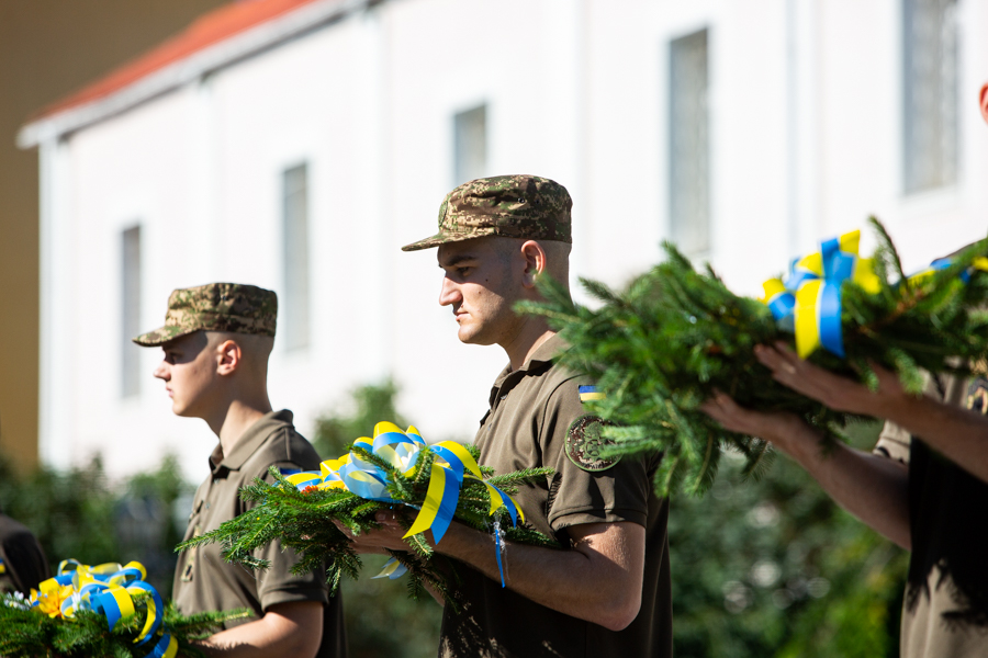 «Сьогодні, у День Конституції України, ми віддаємо шану героям, які на полі бою поклали власне життя, захищаючи нашу свободу і єдність. Вони стали на варту Конституції, на варту незалежності і цілісності України, захищаючи їх ціною власного життя. Нехай їхній приклад надихає усіх на боротьбу за мирне і справедливе майбутнє», - зазначив перший заступник начальника Академії з навчальної та методичної роботи полковник Владислав Єманов.