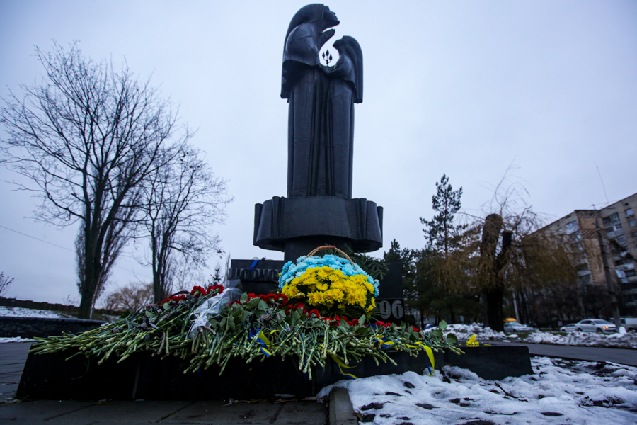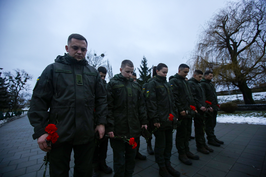 У цей день офіцери та курсанти Національної академії Національної гвардії України вшанували пам’ять загиблих ліквідаторів аварії на атомній електростанції біля пам’ятника Жертвам Чорнобильської трагедії.