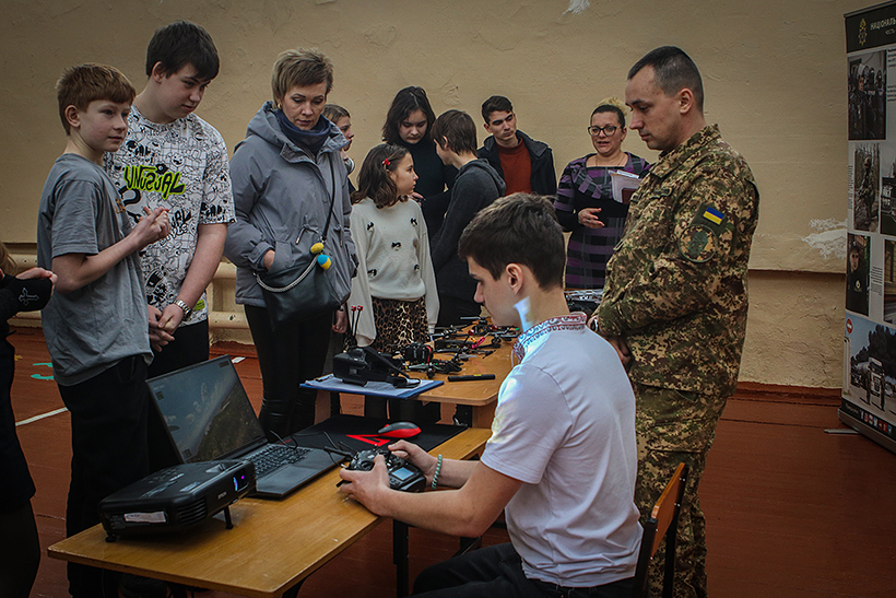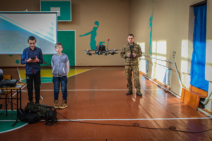 Крім того, військовослужбовці представили школярам сучасні безпілотні літальні апарати, розповіли про їхні технічні характеристики та можливості застосування в умовах сучасного бою. Дівчата та хлопці самостійно спробували керувати ними під наглядом фахівців.