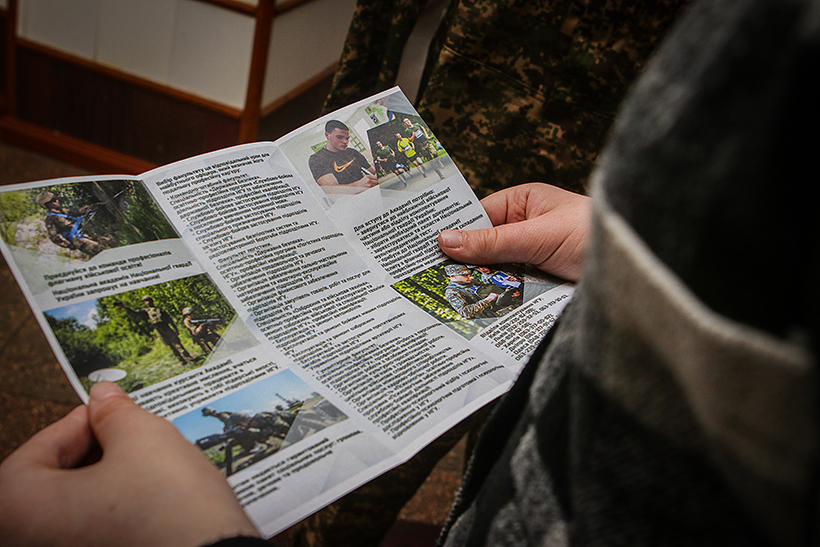 Під час заходу старший офіцер відділу по роботі з особовим складом майор Михайло Ланщиков продемонстрував відеоролики про діяльність Академії та детально розповів про навчальний процес, практичну підготовку курсантів.