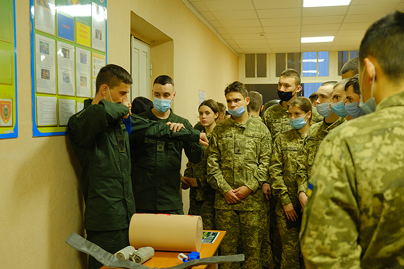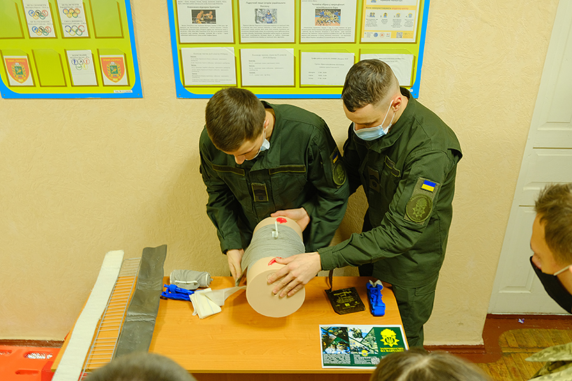 Після ознайомчої частини ліцеїстам надали можливість практично відпрацювати нормативи з тактичної медицини та вогневої підготовки. Учні ліцею приміряли військове спорядження, екіпіровку, спецзасоби. Крім того, курсантка гуманітарного факультету Анастасія Андрущенко провела з юнаками та дівчатами психологічний тренінг на згуртованість.