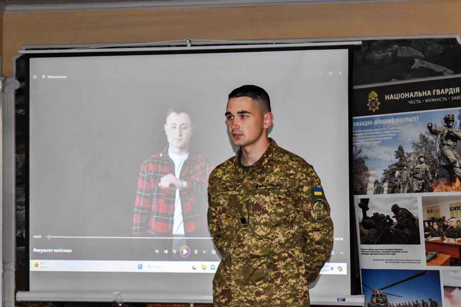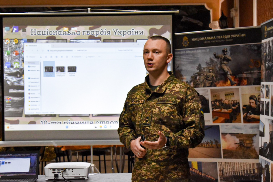 «Наш навчальний заклад постійно розвивається, вдосконалюються освітні програми, впроваджуються нові напрямки навчання, враховуючи актуальну обстановку бойових дій. Наразі основну увагу приділяють практичній складовій занять. Усе направлено на те, щоб підготувати офіцерів НГУ, які будуть професіоналами своєї справи. Тож, вступайте, наразі країні необхідні професійні офіцери та лідери», - звернувся до присутніх начальник відділу профорієнтаційної роботи та забезпечення прийому вступників підполковник Андрій Пітірімов.