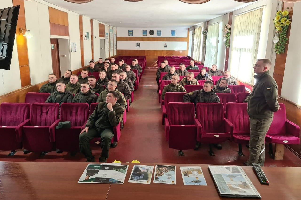 Офіцери Академії розповіли військовослужбовцям про переваги навчання військових за контрактом у навчальному закладі та перспективи після його закінчення. Також військових ознайомили з вимогами, за якими здійснюється набір в умовах воєнного стану.