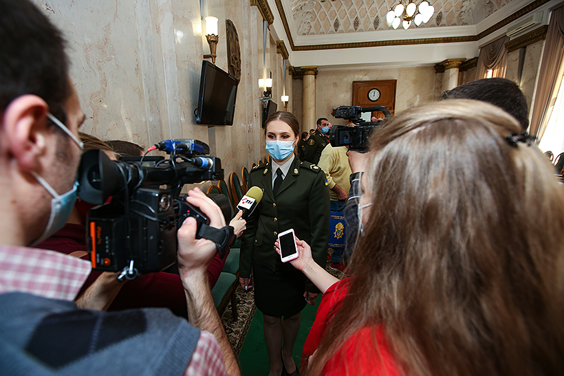 Присутні під час підписання меморандуму солдат строкової служби третьої бригади оперативного призначення НГУ старший солдат Богдан Суряк та курсантка гуманітарного факультету Національної академії Національної гвардії України Тетяна Кульчій навіть не скривають свого здивування.