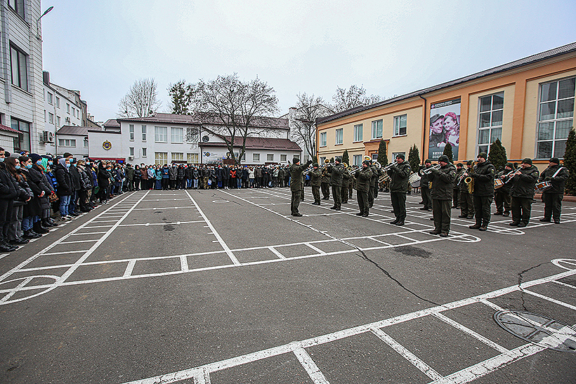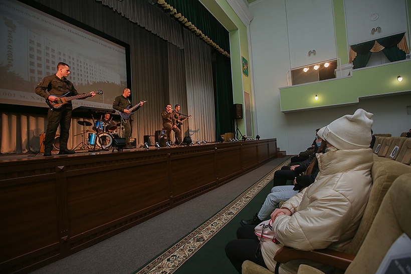 На стройовому плацу навчального закладу курсанти підрозділів спеціального призначення показали порядок відбиття озброєного нападу при супроводженні поважних осіб, прийоми рукопашного бою. Виступив для школярів й духовий оркестр навчального закладу.