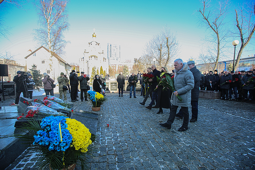 Участь у заході взяли й начальник Національної академії Національної гвардії України генерал-лейтенант Сергій Соколовський та заступник начальника Академії по роботі з особовим складом полковник Юрій Лісняк. Разом з командуванням інших силових структур вони поклали квіти до пам'ятника. Усі присутні вшанували пам'ять загиблих воїнів хвилиною мовчання.