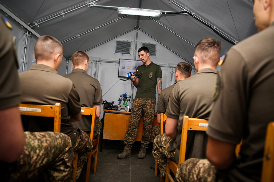 Курсанти командно-штабного факультету Національної академії Національної гвардії України розпочали навчання на двотижневому курсі пілотів FPV-дронів в рамках проєкту комплексного розвитку сфери військових безпілотних літальних апаратів «Армія Дронів». Викладачі кафедри тактики спільно з інструкторами Центру підготовки операторів безпілотних літальних апаратів «AIR SKILLS» навчають майбутніх офіцерів пілотуванню FPV-дронів.