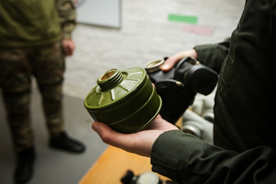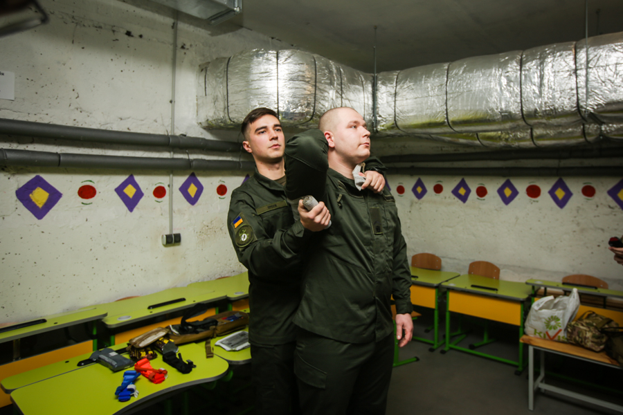 Гвардійці навчили школярів розбирати та збирати зброю, розповіли про види мін та гранат, показали як правильно накладати турнікет та вдягати протигази.