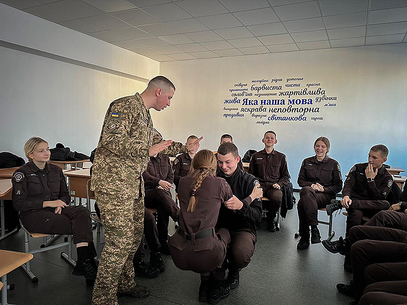 Курсанти гуманітарного факультету Національної академії Національної гвардії України завітали до Івано-Франківського ліцею безпекового спрямування та національно-патріотичного виховання МВС України. Гвардійці провели тренінг з дисципліни «Професійно-психологічна підготовка». Майбутніх правоохоронців ознайомили з вправами на розвиток умінь та навичок комунікації, а також вправами на релаксацію.