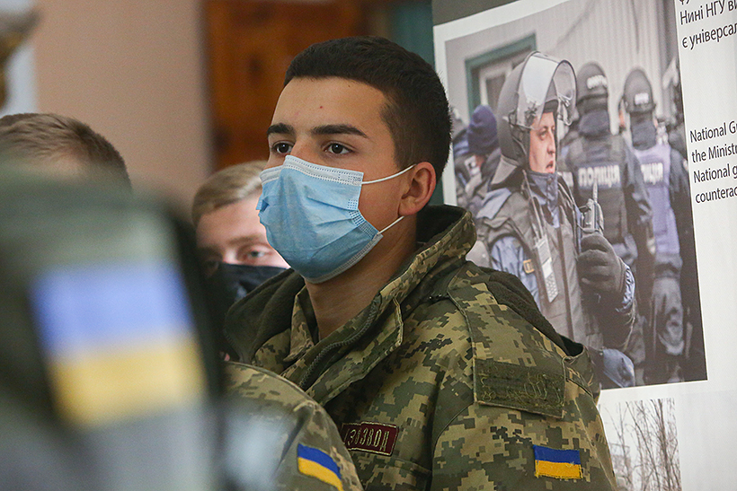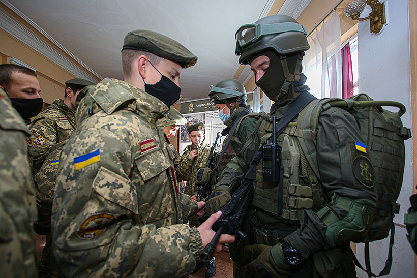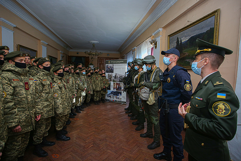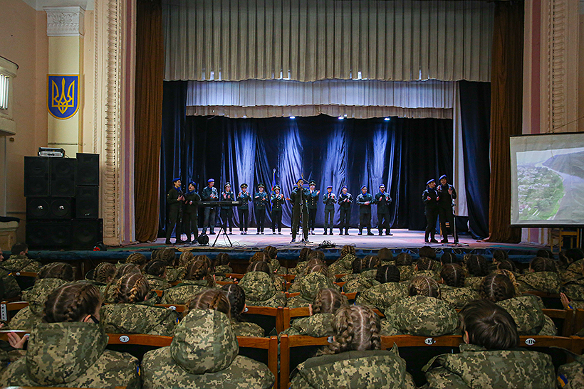 Особлива увага кадетів була прикута до яскравих банерів, які висвітлюють діяльність навчального закладу. Присутнім продемонстрували новітнє озброєння та засоби захисту, які використовуються підрозділами Національної гвардії України.