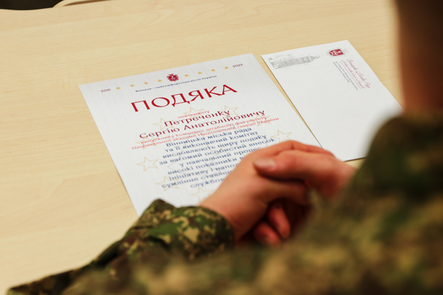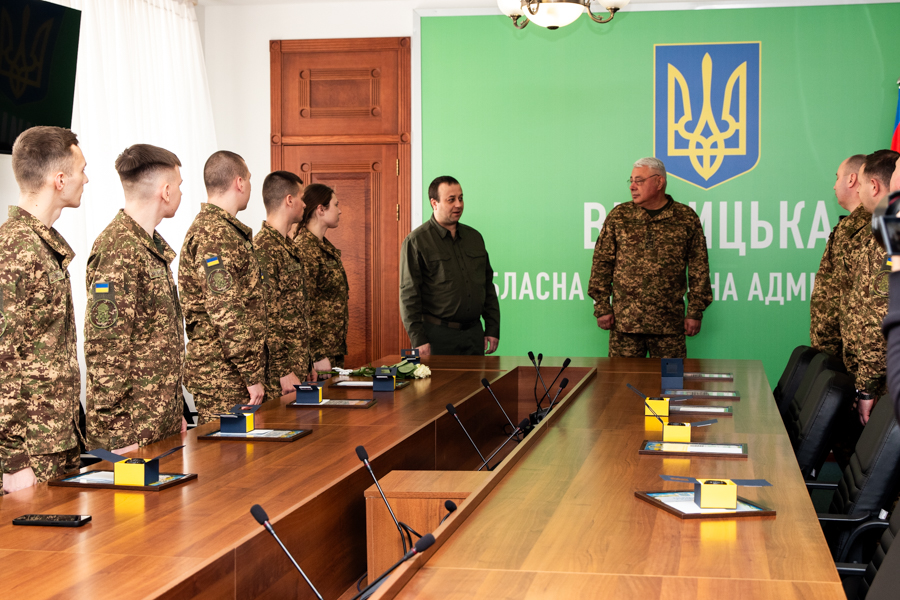 За сумлінне виконання службових обовʼязків, відмінне навчання, наполегливість та ініціативу сім найкращих випускників та п’ятеро викладачів Національної академії Національної гвардії України отримали почесні грамоти та пам’ятні подарунки від начальника Вінницької обласної військової адміністрації Сергія Борзова.