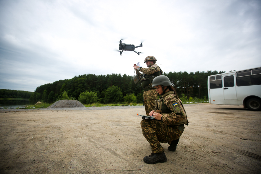 Хлопці та дівчата робили розвідку позицій умовного противника квадрокоптером, визначали та виконували завдання у програмному комплексі «Кропива», керували діями особового складу у бою.
