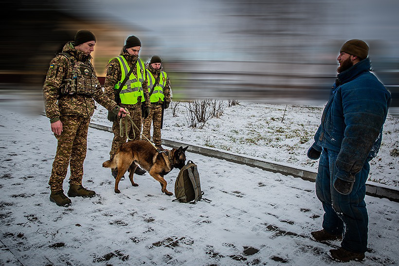 Для відпрацювання порядку затримання та огляду залучались спеціальні кінологічні пари, що дозволило курсантам ознайомитись з роботою службових собак при пошуку заборонених предметів.