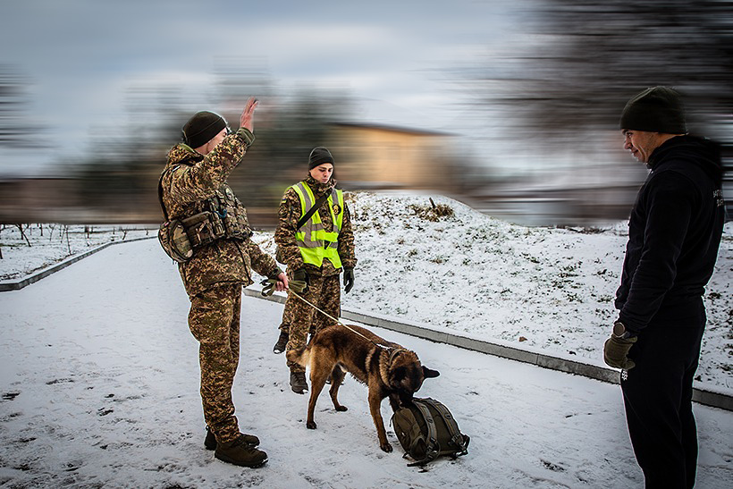 З курсантами другого року навчання командно-штабного факультету пройшли заняття з дисципліни «Тактико-спеціальна підготовка». Заняття провели викладачі кафедри забезпечення державної безпеки за участю 2 кінологічних пар та помічника-фігуранта від кінологічного центру.