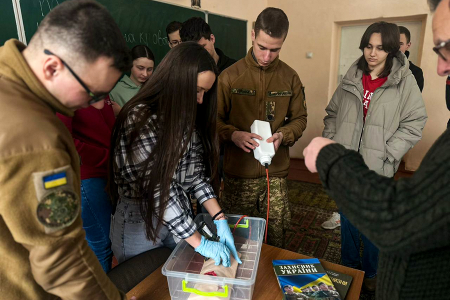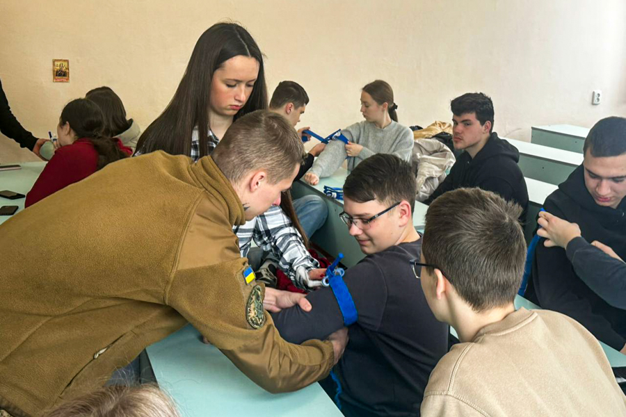 Окрім теоретичної частини, студенти мали змогу особисто відпрацювати практичні навички зупинки кровотечі за алгоритмом MARCH. Це дало їм можливість не лише зрозуміти основні принципи тактичної медицини, а й застосувати отримані знання на практиці.