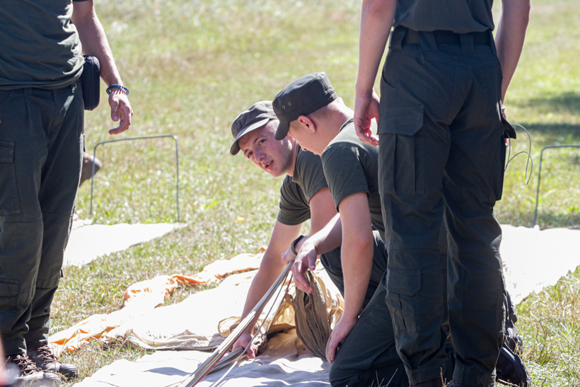Під час заняття курсанти відпрацювали питання укладання людських десантних парашутів та дії в особливих випадках під час стрибка з парашутом.