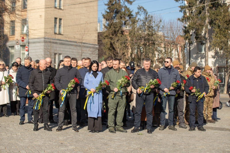 Присутні також вшанували хвилиною мовчання пам’ять полеглих захисників і захисниць України та поклали квіти до пам’ятного знаку «Небесній Сотні та загиблим героям російсько-української війни».
