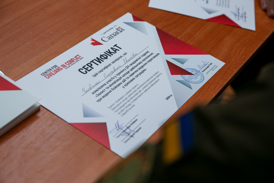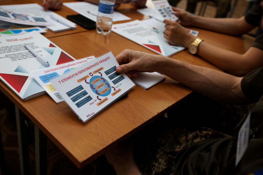 Тема тренінгу: «Захист та мінімізація шкоди цивільному населенню при веденні бойових дій та навички ведення переговорів у кризових ситуаціях».