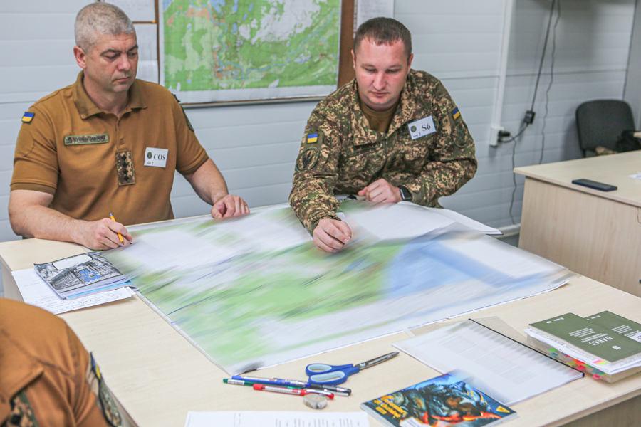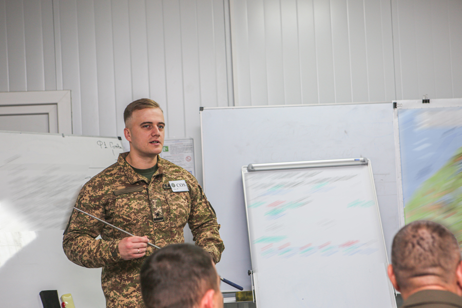 Крім того, важливим є й навчання взаємодії між підрозділами, оцінюванню оперативної обстановки та прийняттю рішень у динамічному середовищі. Особливу увагу під час практичних занять викладачі звертають на повноцінне і своєчасне відпрацювання заходів за етапами процесу прийняття військових рішень за стандартами НАТО (MDMP), навчання офіцерів якісно готувати та проводити відповідні брифінги за напрямками діяльності секцій штабу.