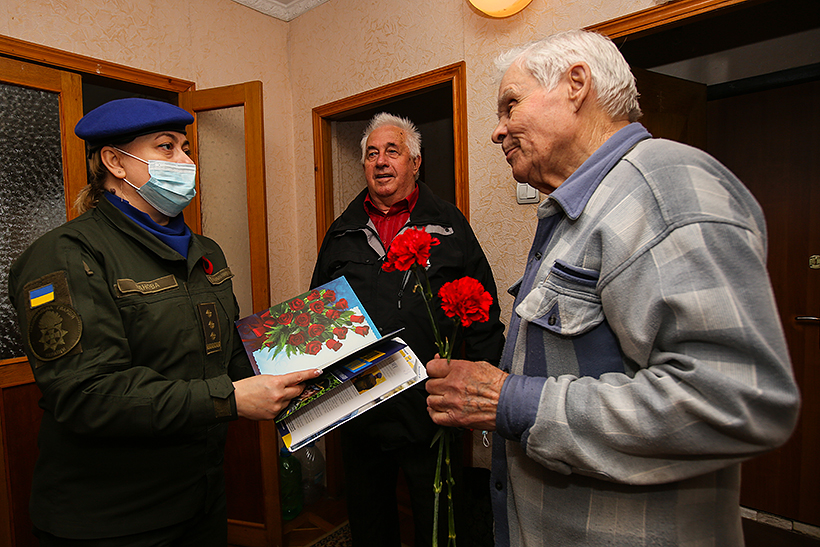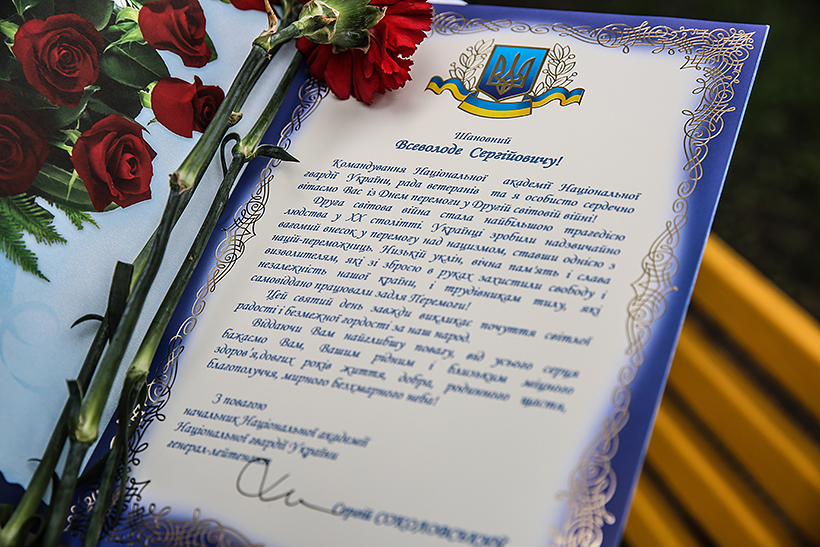 Від імені керівництва Академії Нацгвардії ветеранів привітали заступниця начальника Національної академії Національної гвардії України по роботі з особовим складом полковник Олена Іванова та голова ветеранської організації Академії полковник у відставці Петро Павлов. Вони поспілкувалися з кожним ветераном, а також подарували вітальні листівки та подарунки. Серед ветеранів Другої cвітової війни: Віктор Олексійович Анікін, Олександр Якович Чикунов, Всеволод Сергійович Хлопицький.