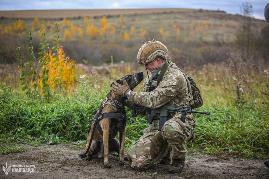 До проведення заняття були залучені кінологічні розрахунки кінологічного навчального центру: гвардійці ознайомилися з тактикою дій кінологічних підрозділів під час виконання службово-бойових завдань. Така взаємодія дозволяє майбутнім офіцерам зрозуміти особливості застосування службових собак у різних ситуаціях та оцінити їхню роль у забезпеченні ефективності підрозділів.