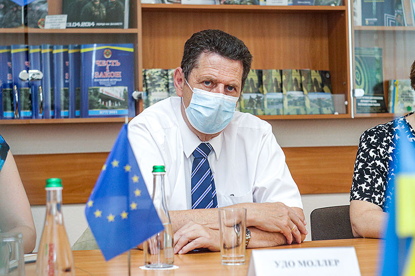 «Наша організація стартувала в Україні з 2014 року. Зовсім нещодавно ми отримали новий мандат та вирішили співпрацювати з Національною гвардією. Національна гвардія відіграє ключову роль у системі охорони громадського порядку. Тому, ми б хотіли нашу роботу сфокусувати саме на цьому питанні, – підкреслив Удо Моллер. – Саме зараз КМЄС налагоджує співпрацю з НГУ у всіх регіонах країни. Наша робоча група аналізує відмінності методології забезпечення громадського порядку НГУ та ЄС. Можу сказати, що наші системи мають схожість».