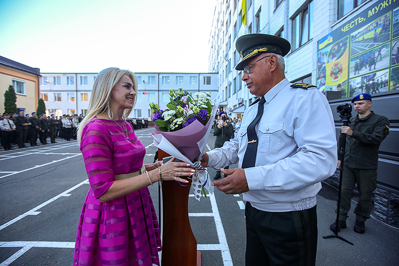 Увесь особовий склад привітав начальник Академії генерал-лейтенант Сергій Соколовський. Очільник навчального закладу зачитав привітання від командувача Національної гвардії України, а потім звернувся до присутніх: «Хотів би сказати нашим першокурсникам, сьогодні ви робите перший крок до вашої мрії. Цей день завжди особливо урочистий та хвилюючий. Саме з нього починається незвіданий, але цікавий шлях пізнання. Глибока шана, вам, науково-педагогічний колектив. Ваша робота – це покликання та особлива відповідальність за підготовку висококласних офіцерів як для Національної гвардії України, так і для нашої держави. Здоров’я вам, добробуту, сил та натхнення на шляху формування військових професіоналів. Всім присутнім бажаю успіхів у навчанні, наукових здобутків та незламної віри у мирне майбутнє нашої Батьківщини».
