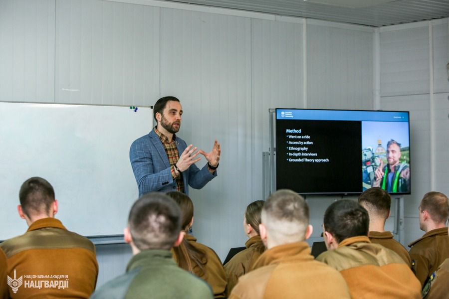 Крім того, для курсантів проведено лекцію, в рамках якої шведський офіцер розповів про своє дослідження в монографії, яке він проводив у зоні виконання бойових дій на сході України. Під час лекції відбулася жива дискусія та обговорення викликів злагодження бойових підрозділів у сучасних бойових умовах.