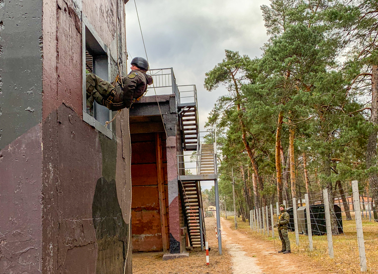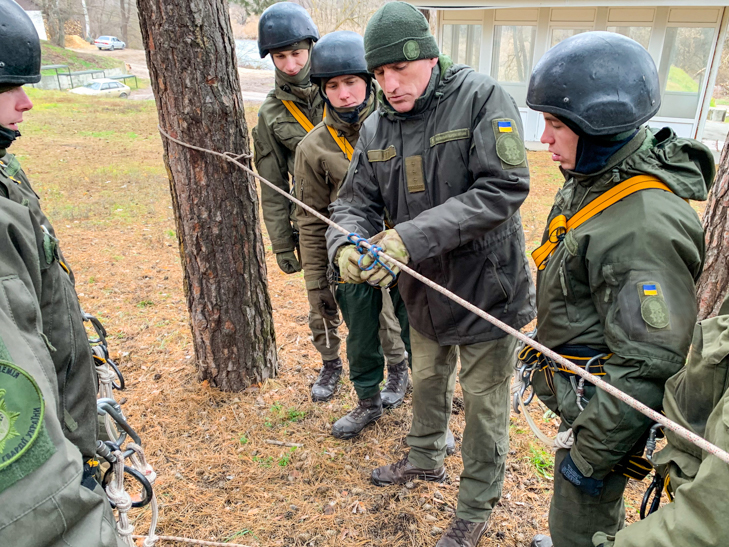 Курсанти відпрацьовували підйом у безопорному просторі, підйом на скалодромі та спуски з використанням різних технік та різноманітного верхолазного спорядження. Крім того, відпрацювали прийоми застосування висотного спорядження при діях групи захоплення на висотних будівлях в умовах міста під час виконання службово-бойових завдань. Всі гвардійці навчались наданню первинної медичної допомоги та евакуації поранених в складних погодно-кліматичних умовах.