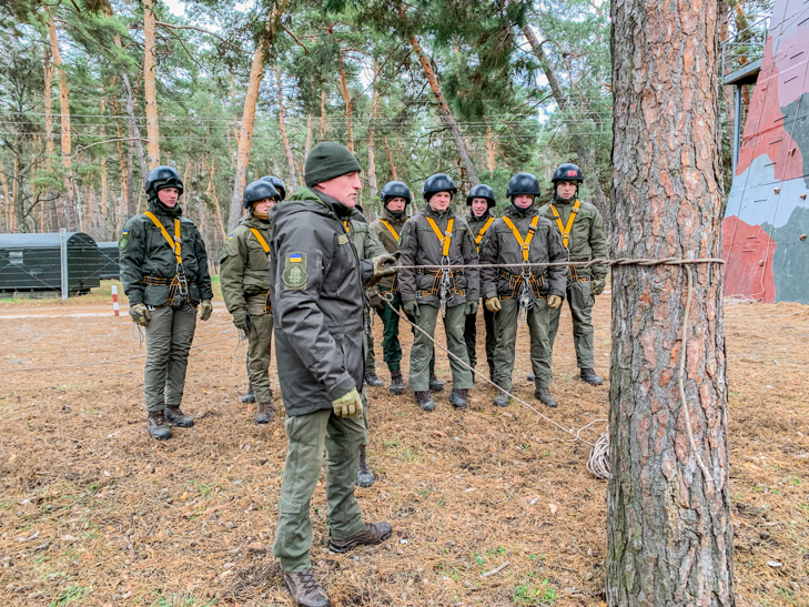 З курсантами-спецпризначенцями третього року навчання командно-штабного факультету пройшло практичне заняття з гірської підготовки. Заняття проходило на гірсько-штурмовій смузі навчального центру Національної академії Національної гвардії України.