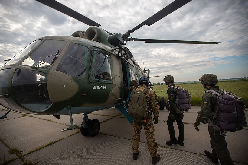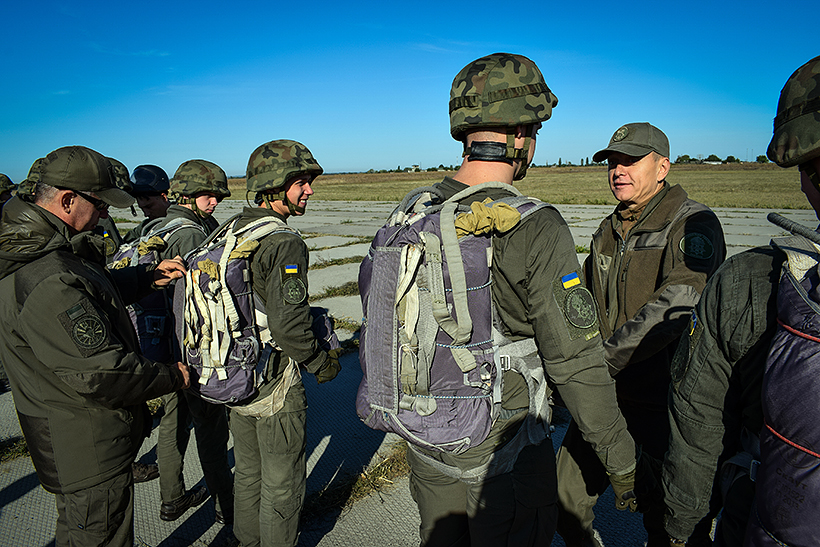 На базі гвардійської авіаційної частини в місті Олександрія, проходять збори з практичного виконання стрибків з парашутом. Починаючи з другого року навчання, спецпризначенці з командно-штабного факультету Національної академії Національної гвардії України, виконують стрибки з парашутом та безпарашутне десантування з вертольоту із застосуванням спеціального обладнання «Адаптер - М1».