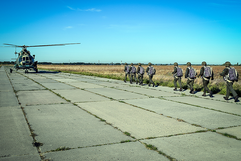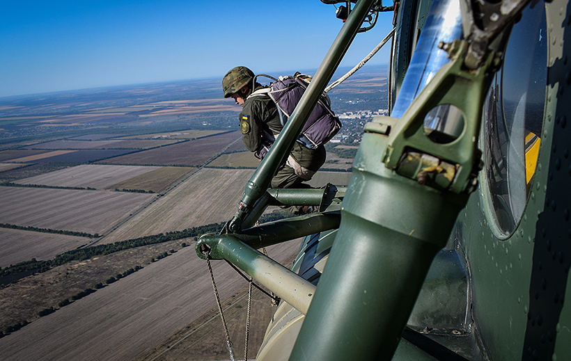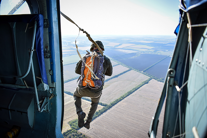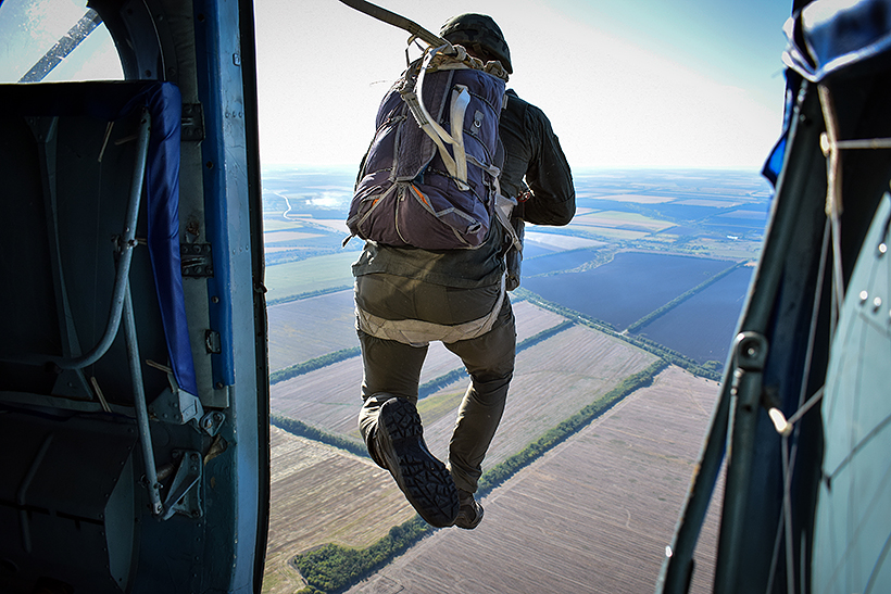 Висадка десанту здійснювалась у два потоки без страховки на висоті від 5 до 15 метрів, а свої перші стрибки з парашутом майбутні офіцери виконували із гелікоптера Мі-8 на висоті 600 метрів.
