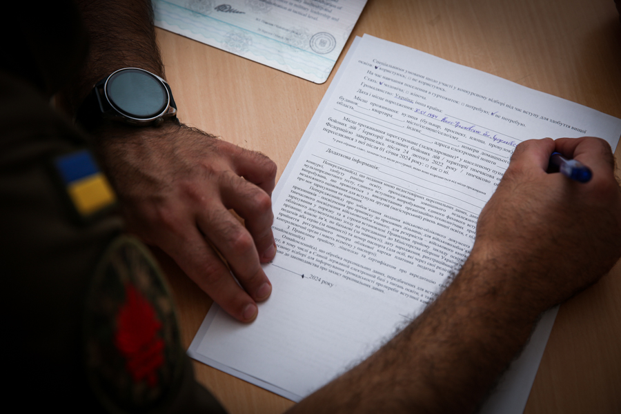 Офіцери написали офіційну заяву на вступ до навчального закладу, остаточно визначившись зі спеціальністю. Згодом члени приймальної комісії проконсультували кандидатів на вступ стосовно порядку проходження екзаменів.