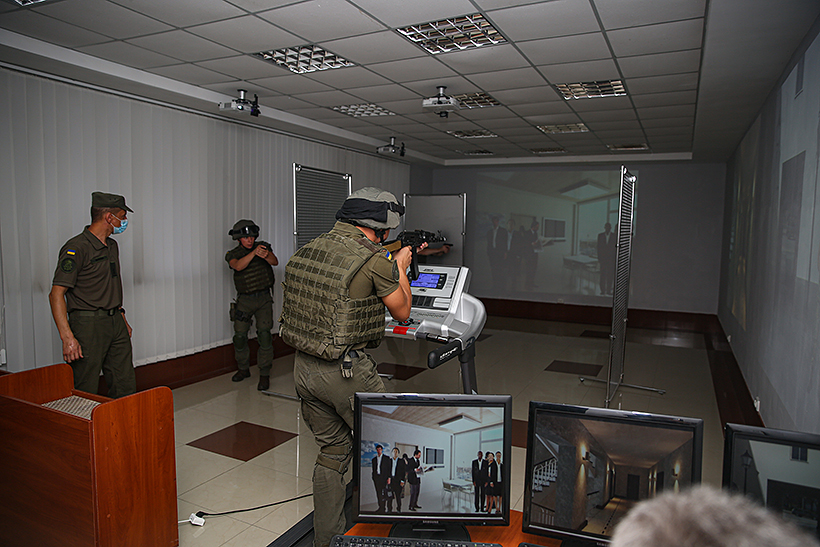 У рамках ознайомлення із матеріальною базою Академії представники експертної комісії відвідали навчально-тренувальний комплекс з вогневої підготовки, який оснащений новітніми тренажерами, мультимедійними та бойовими тирами, оглянули клас ситуаційного моделювання та клас роботи з автомобілем КрАЗ, науково-технічну бібліотеку та музей.