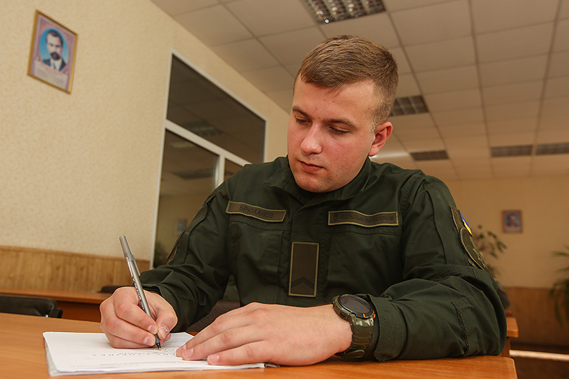 Сьогодні письмовий іспит з математики склав штаб-сержант Андрій Іванько. Гвардієць розповідає, що математика – один з його найулюбленіших предметів зі школи. Тож, йому було цікаво знову вирішити нелегкі задачі.