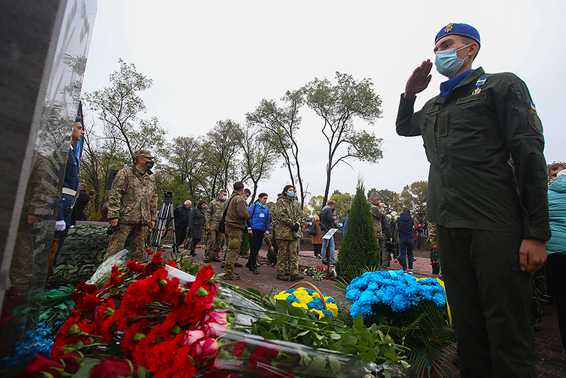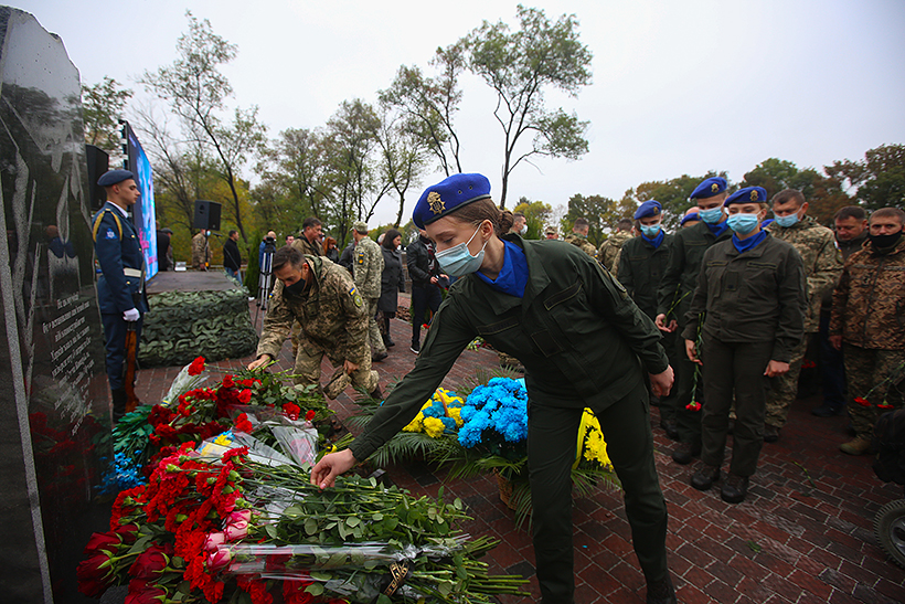 Вшанували пам'ять загиблих і військовослужбовці Національної академії Національної гвардії України. Начальник академії генерал-лейтенант Сергій Соколовський та курсанти гуманітарного факультету поклали квіти до каменя, встановленого на місці, де розбився літак. На тимчасовому пам’ятному знаку – зображення літака та палаючої свічки.