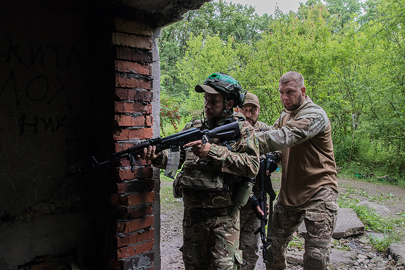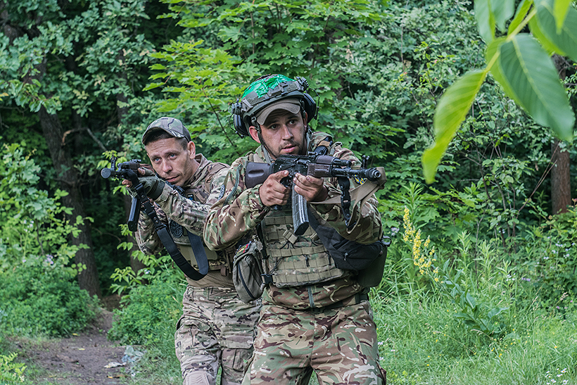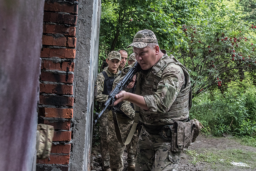 На Харківщині бійці тероборони готуються до бойових дій під час занять з викладачами Академії Нацгвардії. Старший викладач кафедри тактико-спеціальної підготовки майор Максим Саморок та викладач кафедри тактики підполковник Віталій Федоренко вчили воїнів штурмувати будівлю, де умовно перебуває ворог. Військовослужбовці тренувалися у проведенні штурмових дій населеного пункту. Це дозволяло їм відпрацювати необхідну тактику ведення бою в місті та навички, пов'язані з бойовими діями у складних міських умовах.