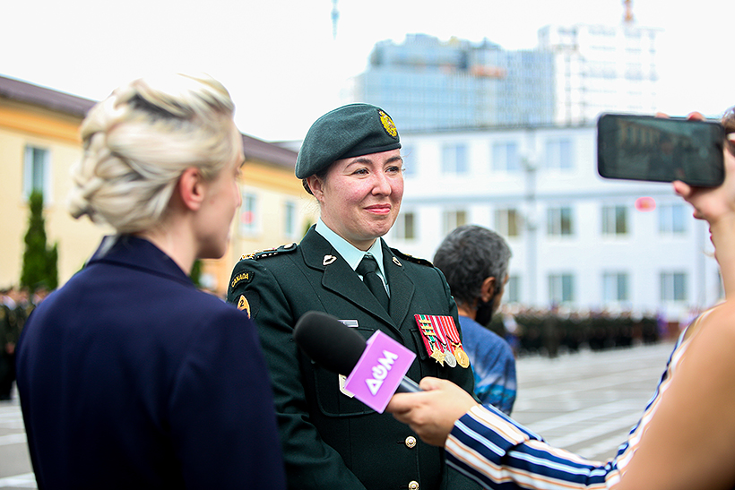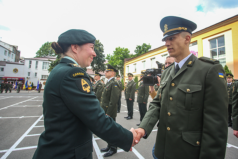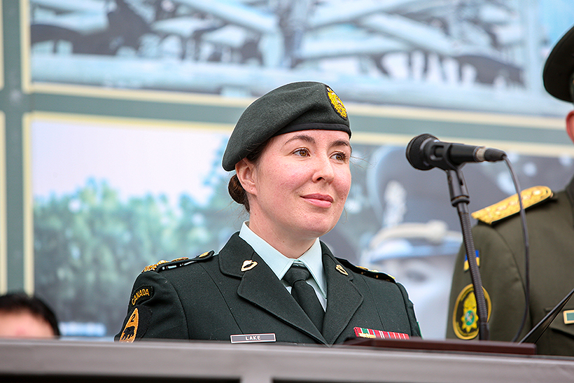«Для мене честь сьогодні бути тут із вами. Ви дуже складно працювали для того, щоб дійти до цієї події, але справжня ваша робота розпочинається тільки завтра, - прокоментувала командир операції UNIFIER підполковник Мелані Лейк. – Ви залишите сьогодні цей стройовий плац, будучи вже офіцерами Національної гвардії України. Ваша найбільша робота – піклуватися про своїх підлеглих. Пам’ятайте, що люди завжди важливіші за техніку і обладнання, а також заслуговують на добре ставлення. Я б хотіла побажати вам дотримуватися мотивації та стати рупором змін на краще. Довіряйте своїй підготовці, адже ви є майбутнім. Канада стоїть пліч-о-пліч і залишається відданою своїй підтримці України на її шляху до взаємосумісності з НАТО. Від імені всіх військовослужбовців операції UNIFIER, а також від імені всієї Канади я хочу передати свої найщиріші привітання та побажання успіху і безпеки у цьому новому розділі вашого життя».