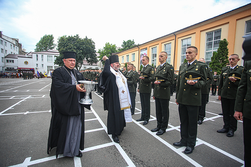 У добру путь офіцерів благословив єпископ Харківський і Богодухівський Митрофан, зачитавши молитву та окропивши гвардійців Святою водою. Приємним подарунком для всіх присутніх стало музичне привітання від вокального колективу Академії «5 стихій» з піснею «Нам є що захищати».