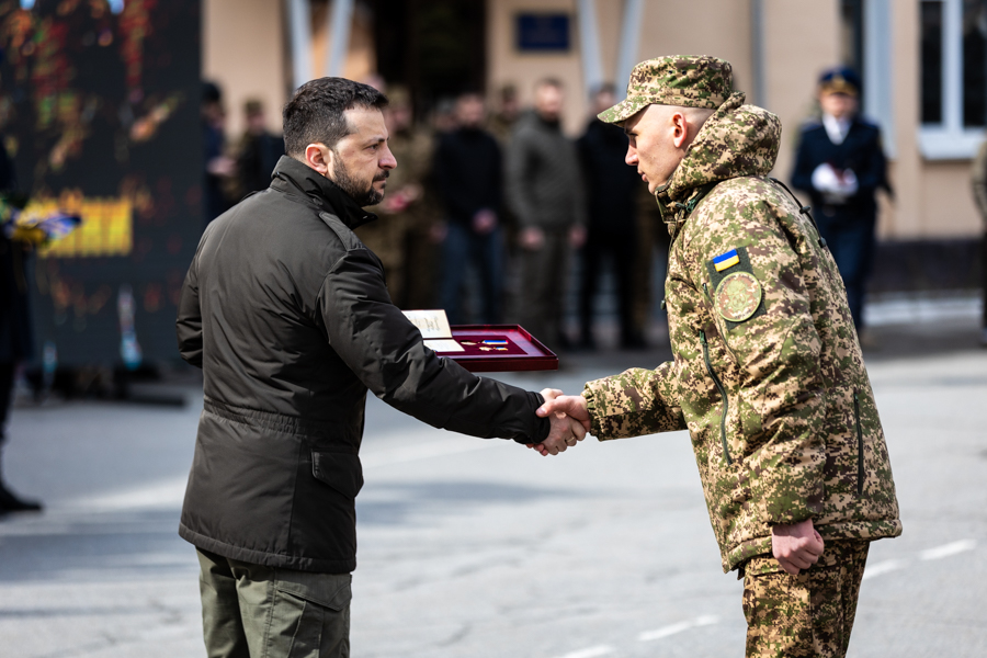 Президент вручив військовослужбовцям Національної гвардії України державні нагороди. У свою чергу, молоді лейтенанти вручили Главі держави шеврон Національної академії НГУ.