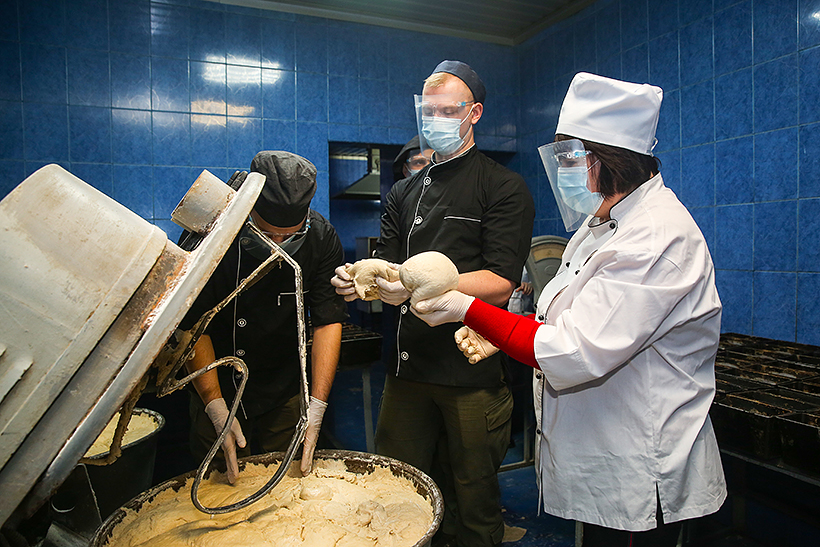 Курсанти-логісти на практиці випробували повний технологічний цикл випікання хліба з дотриманням усіх санітарних і гігієнічних норм. Протягом заняття основний акцент був приділений технологічній схемі виробництва хліба, а саме приготуванню тіста, розподілу тіста на шматки, формуванню заготовок та остаточному розстоюванню. Готове тісто курсанти випікали при температурі 220-230 градусів.