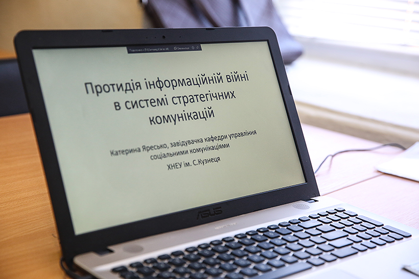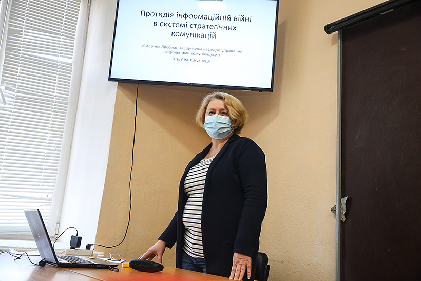 Сьогодні майстер-клас з курсантами гуманітарного факультету провела кандидат педагогічних наук, викладач кафедри управління соціальними комунікаціями ХНЕУ ім. С. Кузнеця Катерина Яресько. Заняття стосувалося протидії інформаційній війні в системі стратегічних комунікацій.