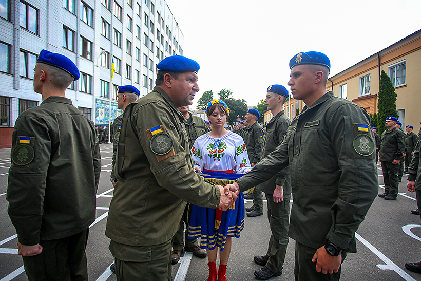 Погони випускникам вручили їх командири і начальники, а гвардійцям, які закінчили навчання з відзнакою, особисто одягнули погони командувач Національної гвардії України генерал-полковник Микола Балан та начальник Академії генерал-лейтенант Сергій Соколовський.